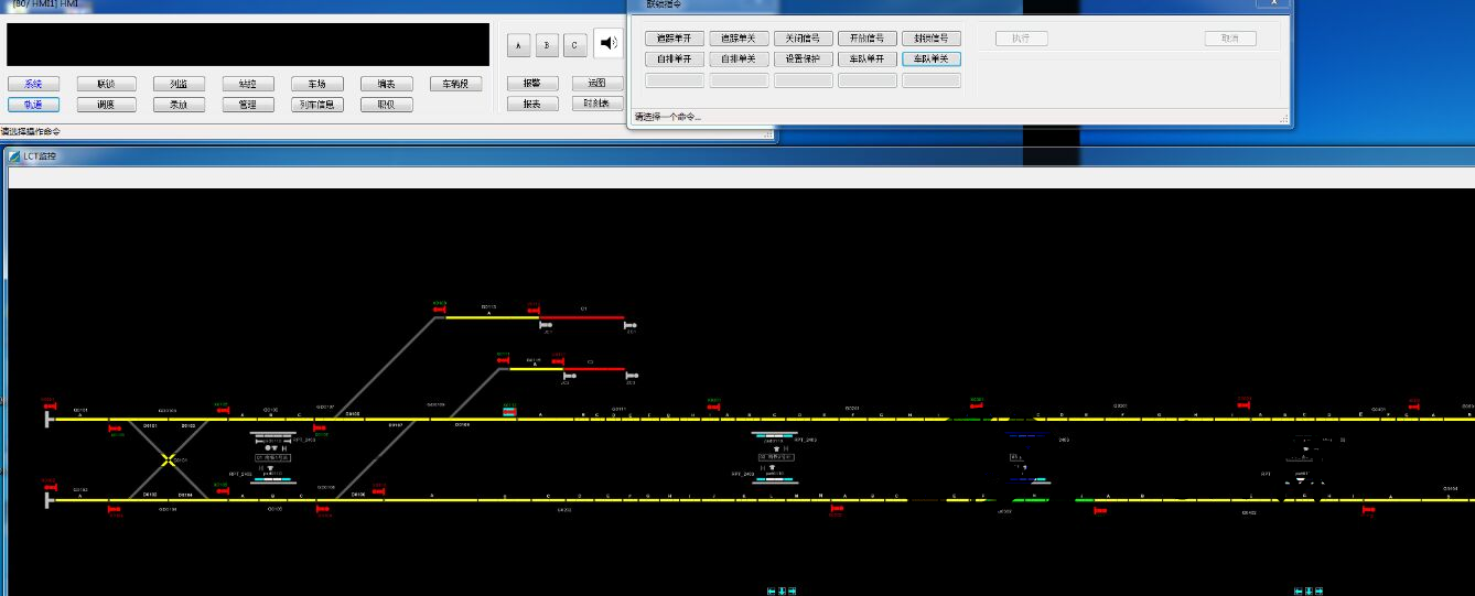 調(diào)度中心仿真系統(tǒng)采用與主流地鐵信號系統(tǒng)OCC相同的人機界面和符號集顯示方式,實訓(xùn)環(huán)境示例如下圖所示。
