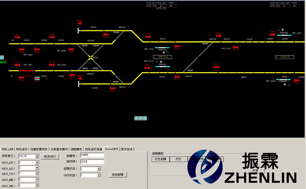 培訓(xùn)模擬器可模擬一定數(shù)量的點式或CBTC列車線路運行,模擬運行相關(guān)故障設(shè)置,并能根據(jù)排列出的進路自動控制多列車自動駕駛,可模擬產(chǎn)生道岔失表、四開、信號機斷絲等信號系統(tǒng)常見故障。培訓(xùn)模擬器界面如下圖所示。