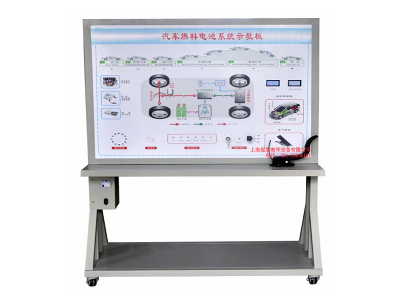 該設(shè)備由啟動開關(guān)、油門踏板、擋位開關(guān)、制動開關(guān)、數(shù)字轉(zhuǎn)速表、電流指示表等,并輔以發(fā)光二極管進行系統(tǒng)流向的動態(tài)指示,加速度傳感器、12V開關(guān)電源、大型彩色噴繪電路原理圖、控制面板、可移動臺架、使用操作手冊等。
