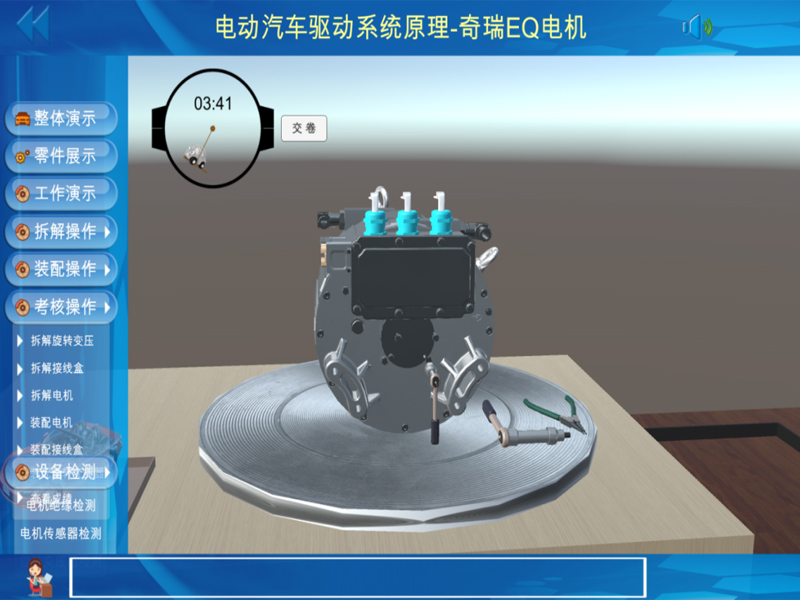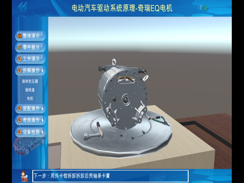 2.模擬拆裝功能:在3D環(huán)境模擬電動機拆裝實訓,了解電動機拆裝過程,方便教學;