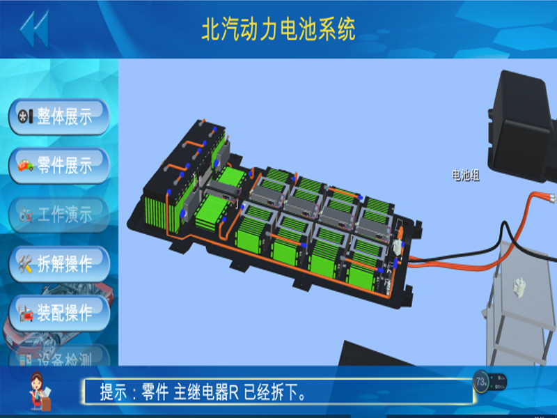 ?、蕖?dòng)力電池虛擬拆裝考核:考核學(xué)員動(dòng)力電池拆裝機(jī)能。