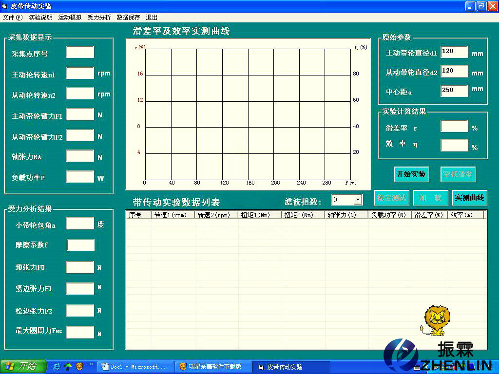 2、皮帶傳動運動模擬:該實驗裝置配置的計算機軟件,通過數(shù)模計算作出帶傳動運動模擬,可清楚觀察皮帶傳動的彈性滑動和打滑現(xiàn)象。