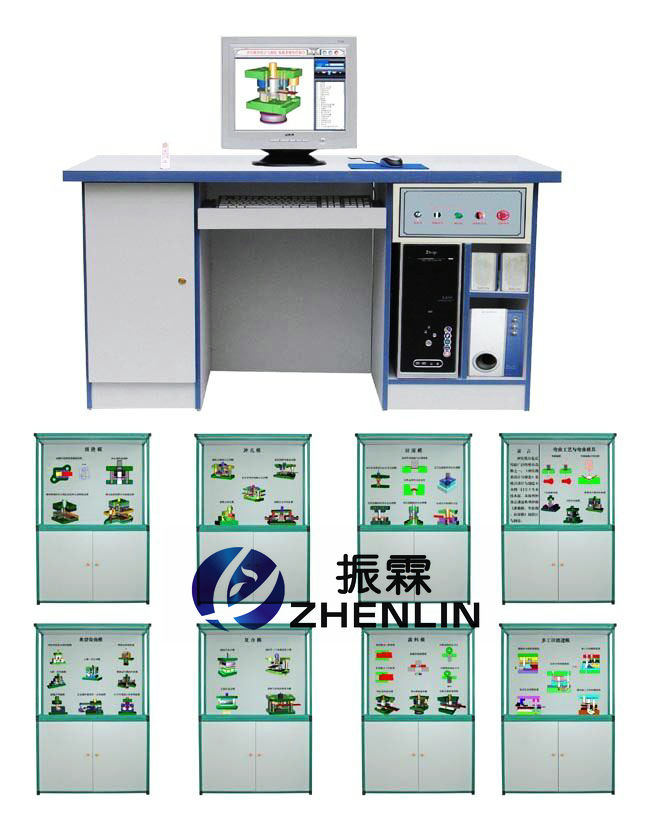 沖壓模具設(shè)計與制造陳列柜是模具設(shè)計與制造專業(yè)的一門主干專業(yè)技術(shù)課。適用于《沖壓模具設(shè)計與制造》、《沖模設(shè)計應(yīng)用實例》等課程。本課程是以教育部高教司《關(guān)于加強高職高專人才培養(yǎng)工作的若干意見》等文件對高職高專人才培養(yǎng)的要求為指導思想。采用多種素材和媒體手段,講述典型沖模(沖裁模、彎曲模、拉深模)的設(shè)計與制造,適度介紹了多工位級進模設(shè)計與制造。沖壓模具設(shè)計與制造陳列柜共分八個柜和一個電腦控制臺,進行多媒體聲控同步解說演示。柜內(nèi)47件模型均采用動畫圖像由PC電腦軟件控制順序或任選播放演示沖壓模具功能原理。
