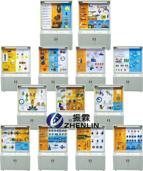機械設(shè)計基礎(chǔ)陳列柜是我公司根據(jù)全國技工學(xué)校機械類通用教材《機械基礎(chǔ)》示教陳列柜是一套電化教學(xué)設(shè)備。,機械基礎(chǔ)陳列柜共分十個柜和一個電腦控制臺,聲控同步演示,采用單驅(qū)動由電腦或電子設(shè)備控制運轉(zhuǎn)演示可由VCD控制順序自動運行講解,又能根據(jù)教材教學(xué)需要遙控任意選擇進行單獨演示。機械設(shè)計基礎(chǔ)陳列柜模型材料采用進口有機板制造,板面附有銀滌綸不干膠作必要的圖表和文字說明,演示形象逼真,運行可靠。