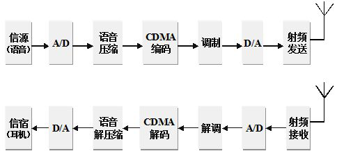 (2)收端:接收、下變頻、解調(diào)、CDMA譯碼、擴張、還原語音。